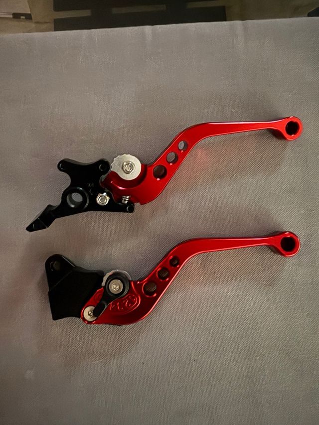Palancas de freno y embrague para Honda CBR. Están en perfecto estado y son de color rojo. - Fabricadas en aluminio. - Diseño deportivo. - Color rojo. - Incluye dos palancas.