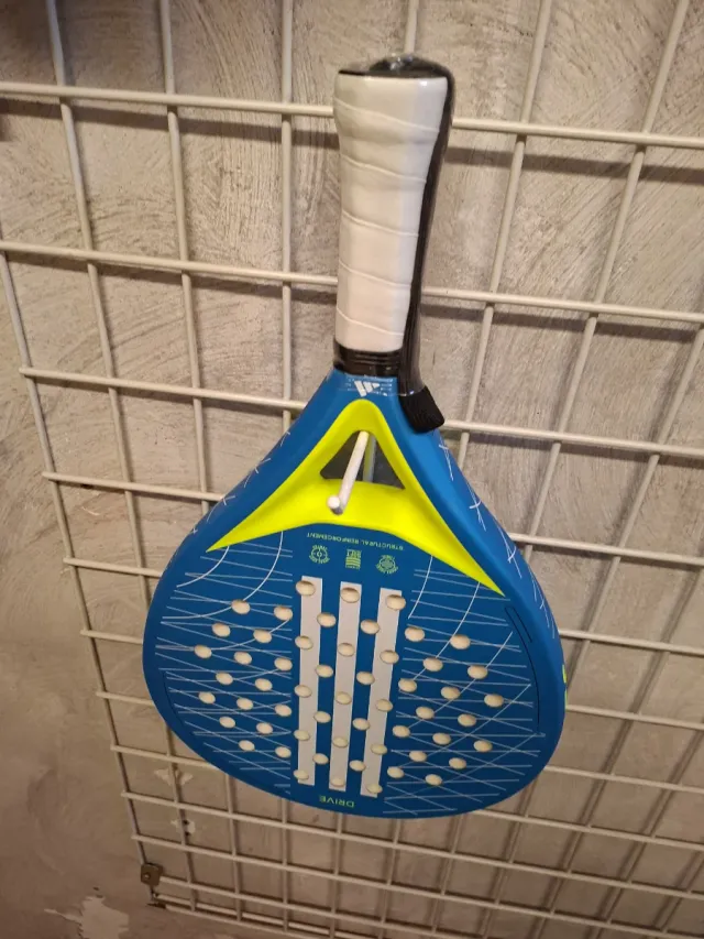 Detalles del productoPala de pádel Adidas Drive con un diseño llamativo en azul y amarillo. Ideal para jugadores que buscan control y potencia.