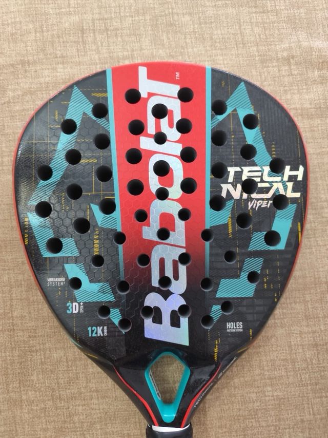 Detalles del productoPala de pádel Babolat Viper del año 2023. Diseñada con un acabado llamativo en rojo y detalles en negro y turquesa.