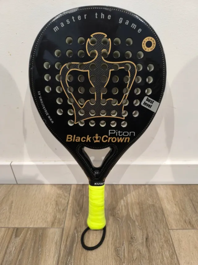 Pala de pádel Black Crown Piton. Siempre con protector, solo rascadas - Diseño en color negro con detalles dorados. - Funda protectora incluida.