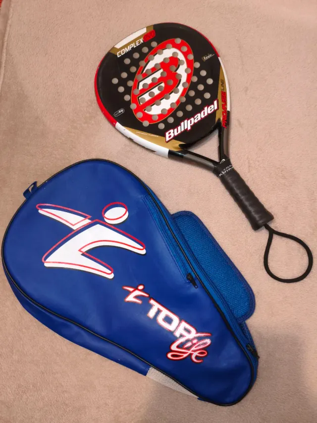 Se vende pala de pádel Bullpadel junto con su paletero acolchado. - Pala Bullpadel Complex Evo. - Grip nuevo kuikma - Paletero acolchado azul con logo Top Life