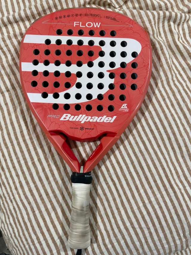 Detalles del productoPala de pádel Bullpadel Flow W modelo 2023, diseñada en colaboración con Ale Salazar. Su diseño presenta un llamativo color rojo con detalles blancos y negros.