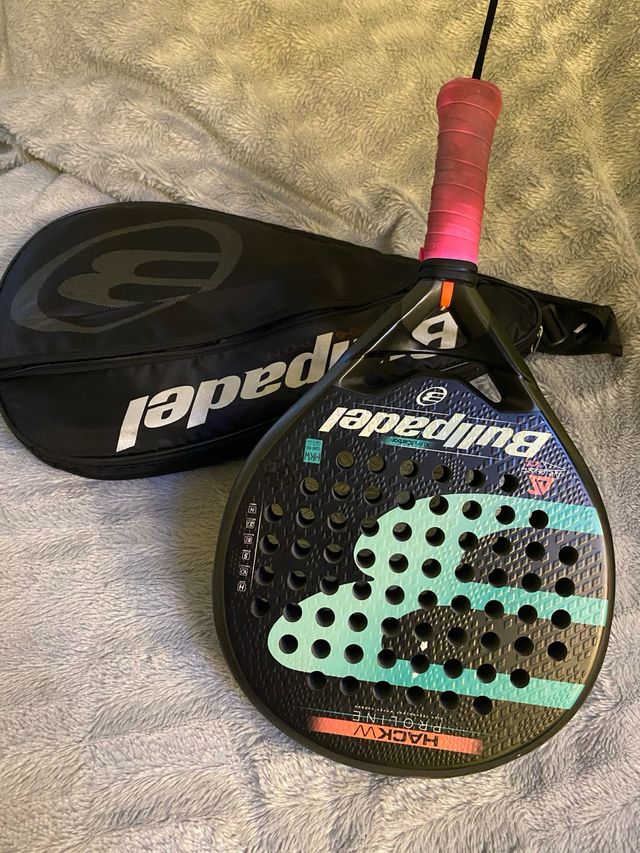 Pala de pádel Bullpadel Hack Woman Proline con funda. - Pala de pádel. - Incluye funda. - Diseño en negro con detalles en verde menta y coral.