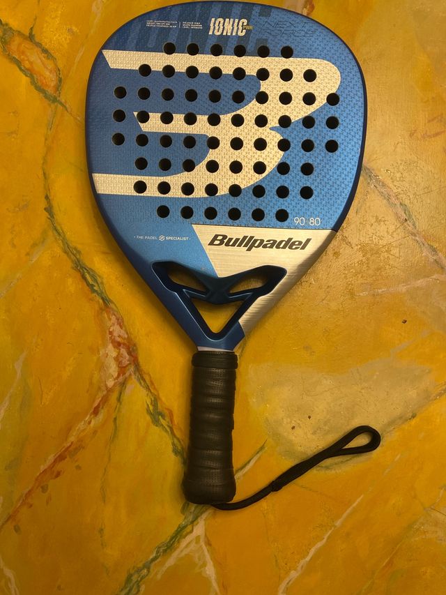 Pala de pádel Bullpadel modelo Ionic Power. - Color azul y blanco. - Diseño con el logo de Bullpadel. - Incluye cordón de seguridad.