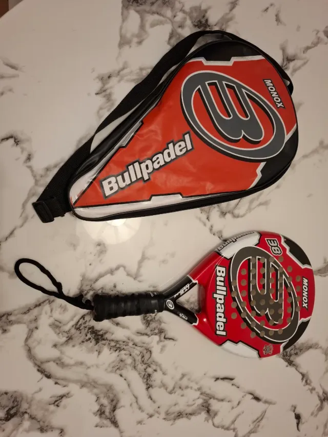 Pala de pádel Bullpadel Monox 38 en color rojo y blanco. Incluye funda protectora. Poco uso.