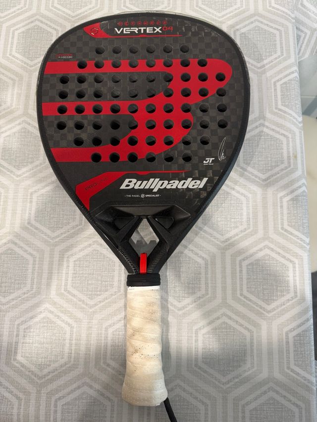 Detalles del productoVendo pala de pádel Bullpadel Vertex 04 en muy buen estado. -Modelo: Vertex 04. -Marca: Bullpadel. -Es una pala ligera y manejable, ideal para jugadores de nivel intermedio. -El grip está en buen estado. -Se entrega tal cual se ve en las fotos.