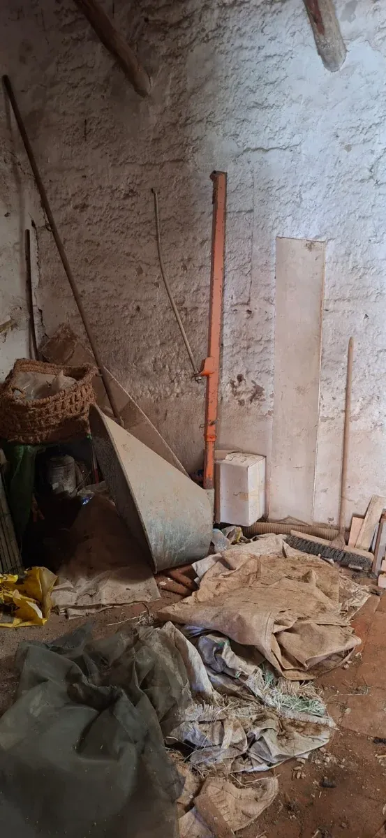 Herramienta para la recogida de aceitunas. - Pala de metal. - Mango de madera.