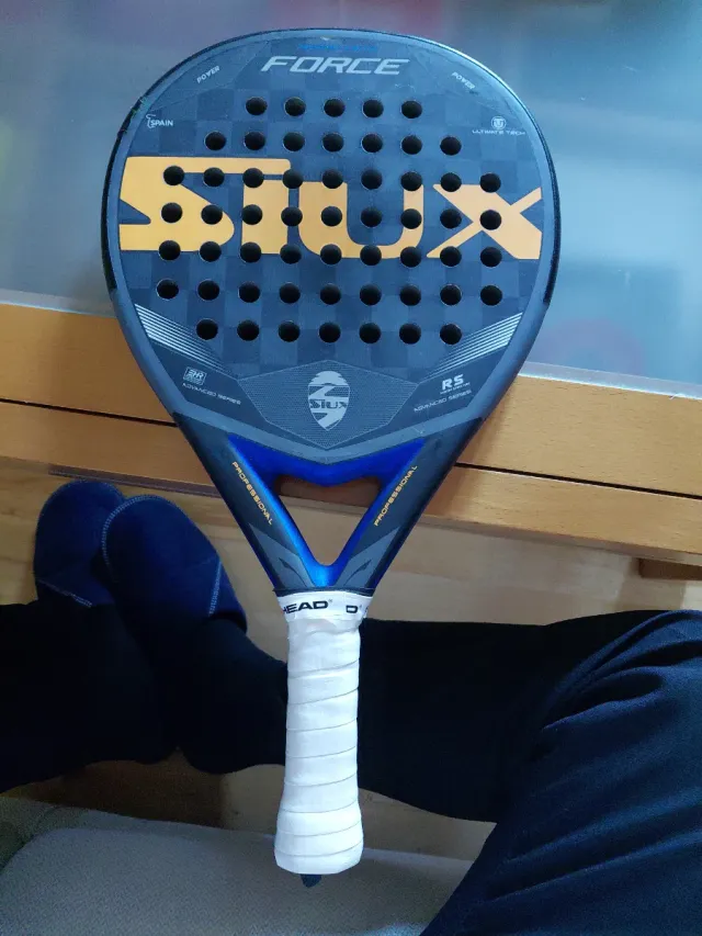Pala de pádel para jugar. - Forma redonda. - Marco de fibra de vidrio. - Goma EVA.