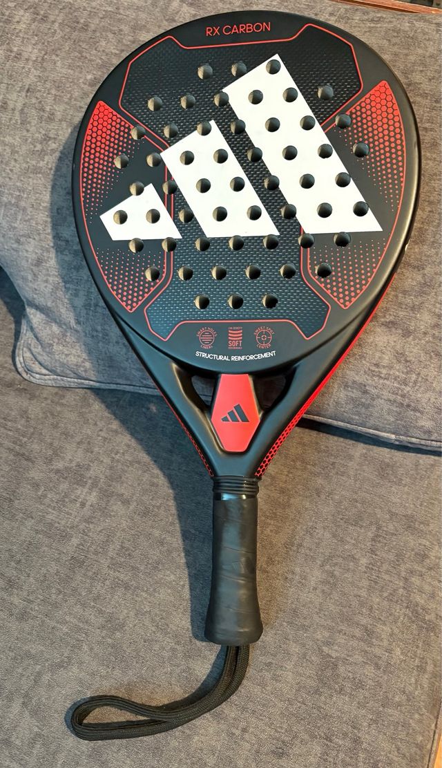 Detalles del productoPala de pádel Adidas RX Carbon en color negro y rojo. Diseño moderno y deportivo.