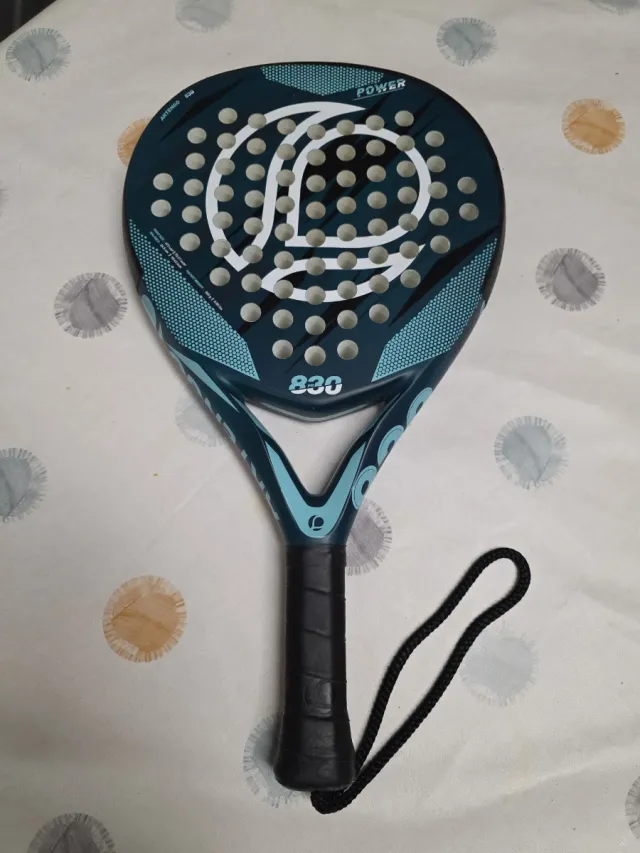 Pala de pádel Artengo modelo POWER 830. - Pala de pádel con diseño moderno. - Color verde y negro, parece azul en las fotos. - Incluye cordón de seguridad.