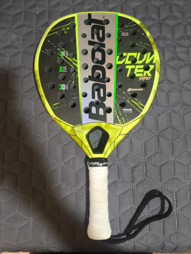Detalles del productoPala de pádel Babolat Counter Viper con un diseño llamativo en amarillo y negro. Está prácticamente nueva.