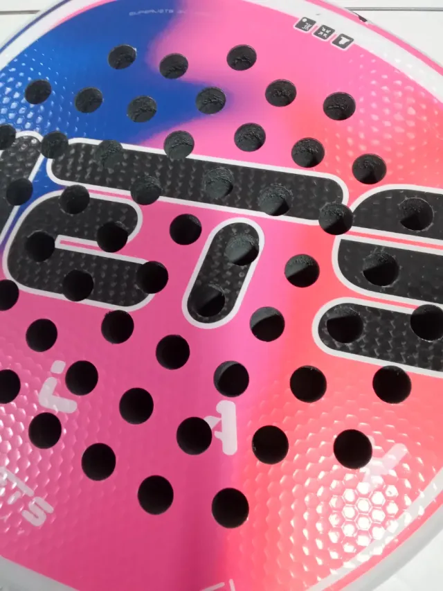 Detalles del productoPala de pádel Bullpadel modelo Jets P-51 con un diseño moderno y llamativo en tonos rosas y azules.