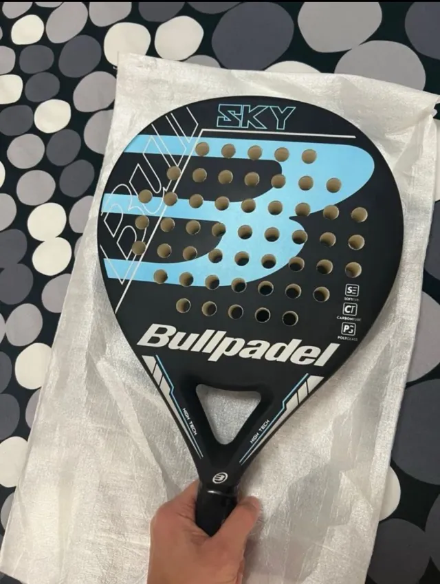 Pala de pádel Bullpadel SKY con diseño moderno. - Pala de pádel Bullpadel. - Modelo SKY. - Color negro y azul. - Incluye funda.