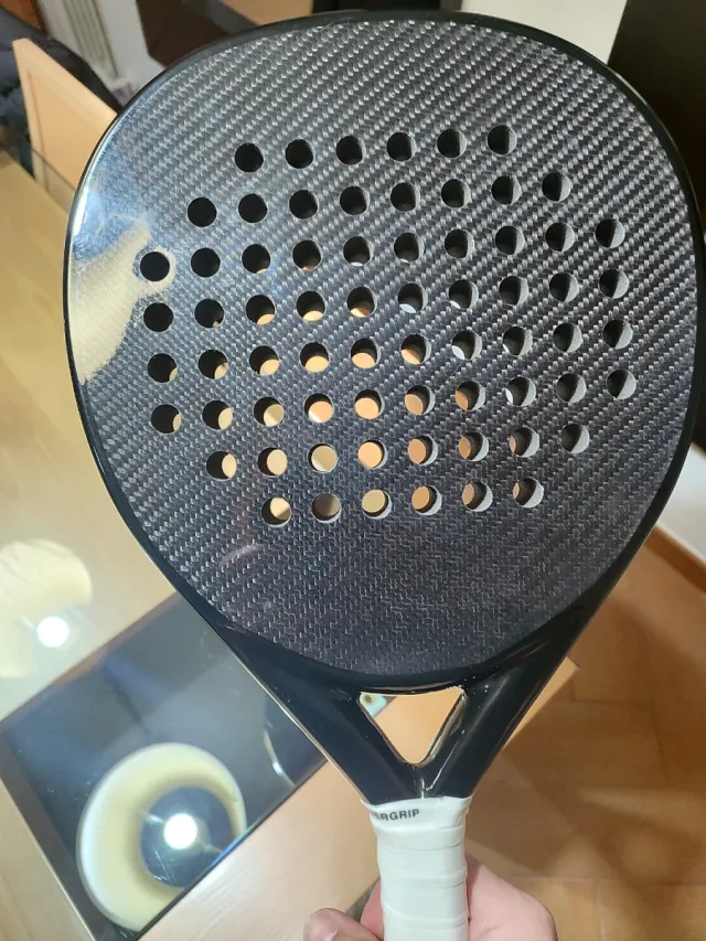 Detalles del productoPala de pádel carbono. Con goma media dura gran potencia y control 360 grs muy manejable pala de nivel medio alto responde fenomenal cuando tienes algo de técnica