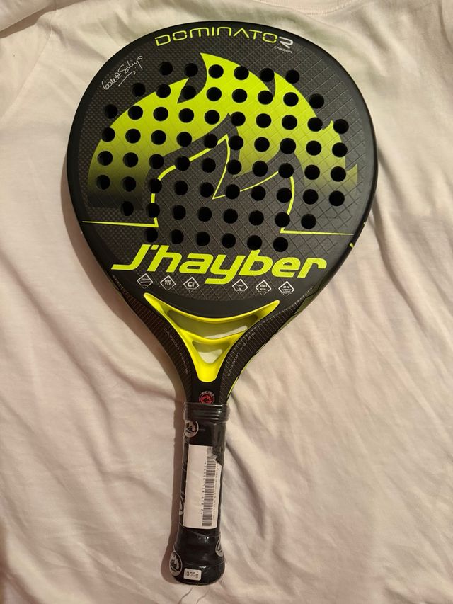 Pala de pádel J'hayber Dominator en color negro y amarillo. - Diseño con acabado mate. - Marco de carbono. - Peso: 360g.