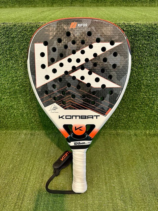 Detalles del productoPala pádel Kombat Xifos de Mati Díaz. Está en perfecto estado. Ambas caras de la pala intactas y con protector en el marco de la bandera de España. Ningún roce ni marca de nada. Muy bien cuidada.