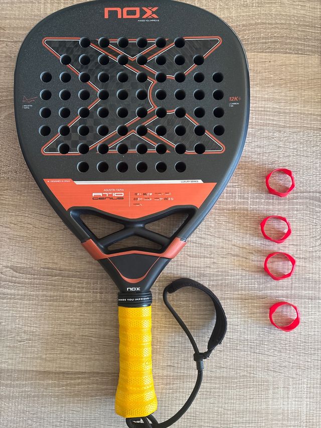 Detalles del productoPala de pádel NOX AT10 Attack 12K, diseñada en España. Modelo de Agustín Tapia. Apenas 3-4 partidos, sin golpes y siempre con protector, la vendo porque tengo varias y está apenas la uso..