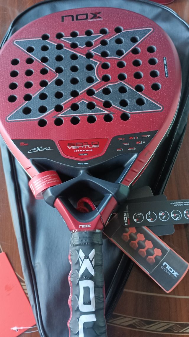 Pala de pádel profesional de la marca NOX. - Modelo: Ventus Hybrid 12k xtrem. - Diseño en color rojo y negro. - Incluye funda protectora.