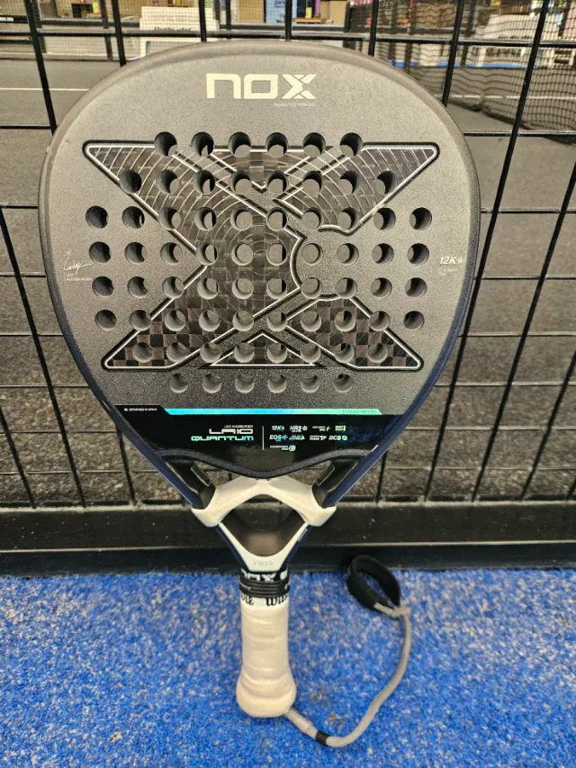 Detalles del productoPala de pádel NOX Quantum con acabado en carbono.
