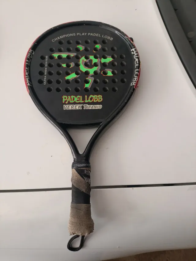 Pala de pádel Padel Lobb Verek Titanio. - Diseño con sistema Ultra Wide. - Marco con detalles en rojo y negro. - Grip Slazenger.