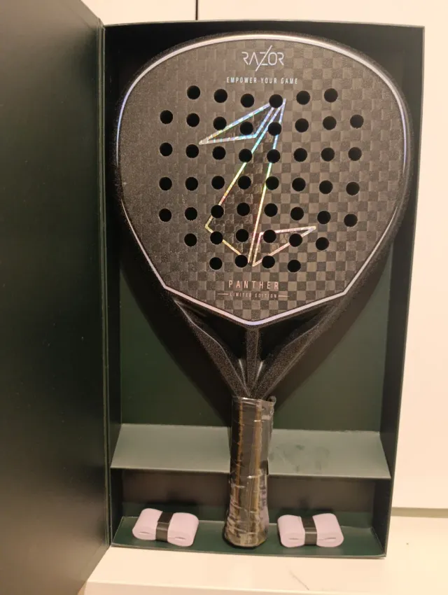 Detalles del producto Pala de pádel a estrenar.((Tiene micro taras casi imperceptibles, de ahí su precio especial)) (¡solo 3 últimas unidades!). Ideal para regalo, incluye caja magnética. Permite golpes potentes y agresivos sin perder control gracias a su maniobrabilidad y superficie pulida con chorro de arena. Diseñada tras estudiar las mejores características del mercado, combina reactividad, ligereza y elegancia. ¡Entra al juego con la nueva Panther 24 y conquista la pista!