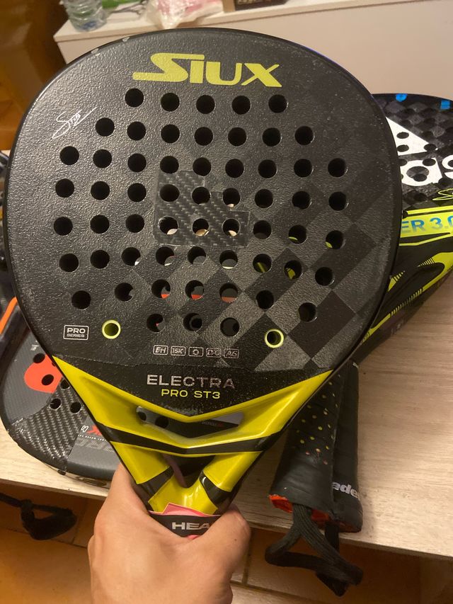 Pala de pádel Siux Electra Pro ST3 con reparación. - Modelo: Electra Pro ST3 - Marca: Siux - Color: Negro y amarillo - Incluye funda