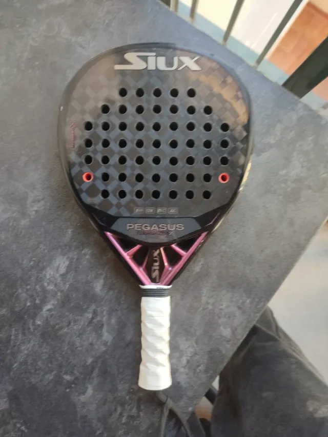 Pala de pádel SIUX Pegasus con un diseño moderno y llamativo. - Pala de pádel. - Modelo Pegasus. - Marca SIUX. - Color negro. -Precio negociable