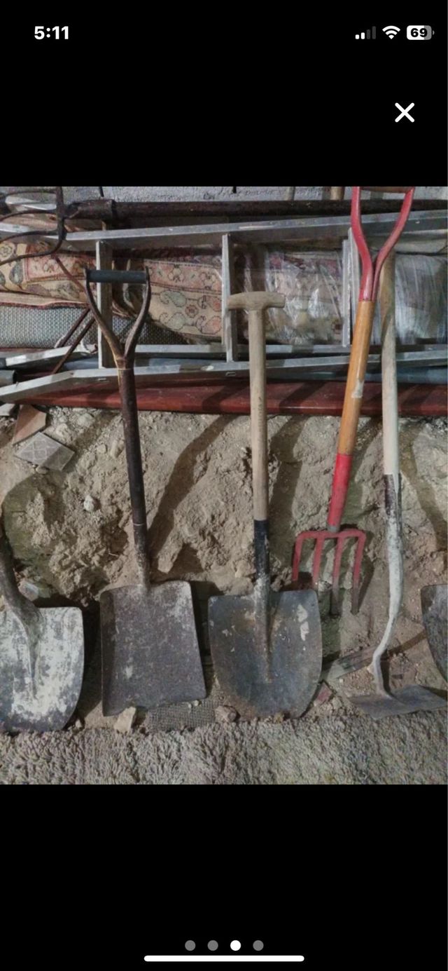 Herramienta de trabajo para diversas tareas. - Pala de metal. - Mango de madera.