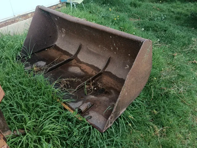 Pala de tractor de metal, ideal para trabajos agrícolas o de construcción.