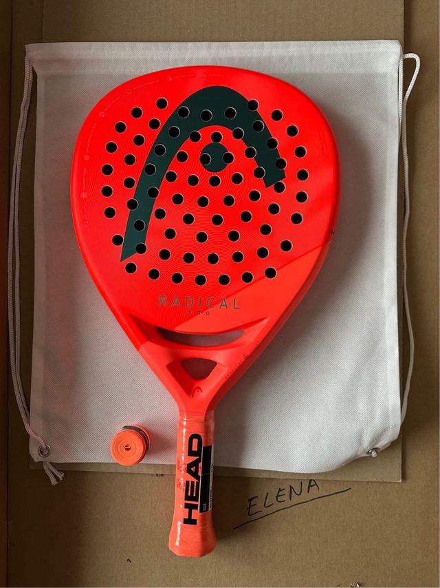 Pala de pádel HEAD RADICAL PRO en color naranja y verde. - Incluye funda protectora. - Empuñadura con overgrip naranja.