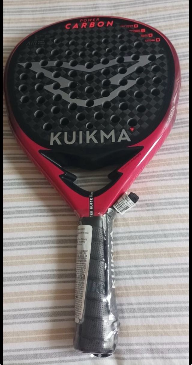 Pala de pádel Kuikma Power Carbon, a estrenar. - Pala con acabado en carbono. - Diseño deportivo en color rojo y negro.