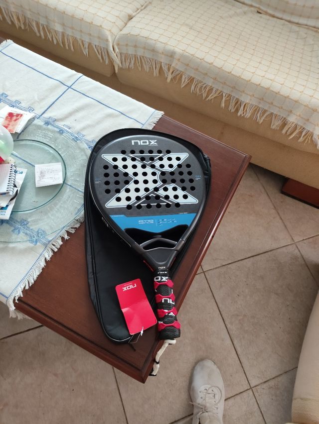 Pala de pádel Nox AT10 12K. - Pala de pádel de alta gama. - Incluye funda protectora. - Diseño moderno y atractivo.