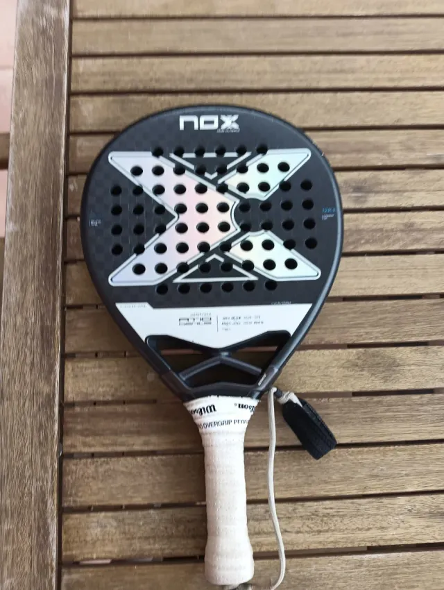 Pala de pádel Nox AT10 12K. Tiene una grieta en el marco como se aprecia en una de las fotos -365gramos Algo negociable