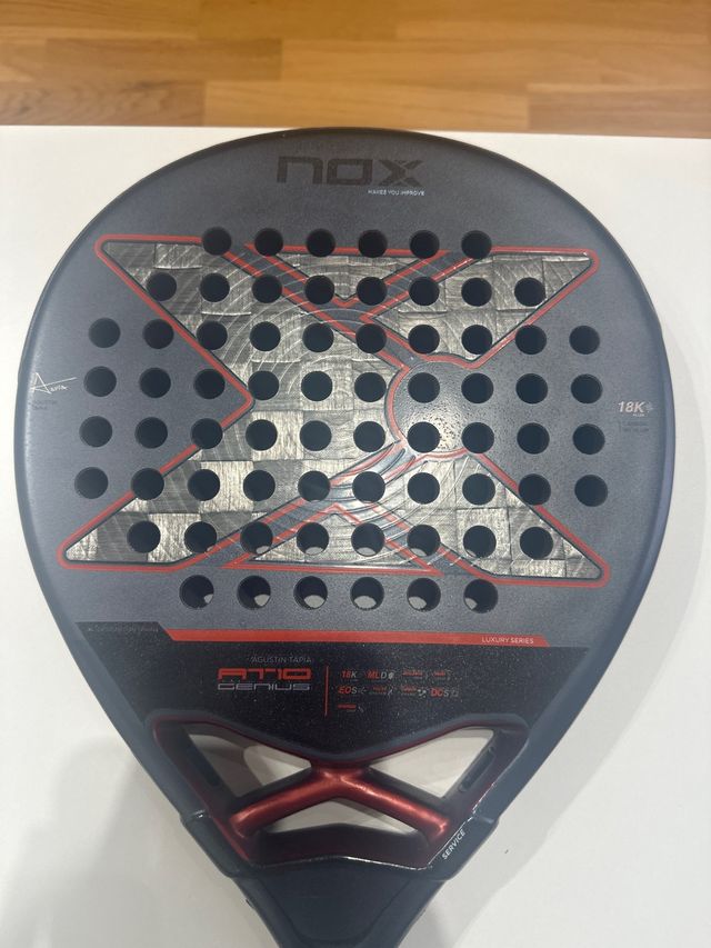 Detalles del productoPala de pádel Nox AT10 18K, diseñada para un juego avanzado.