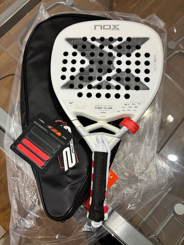 Pala de pádel NOX AT10 Genius en color blanco. - Diseño con acabado mate. - Incluye funda protectora. - Incluye juego de protectores de marco y cordaje.