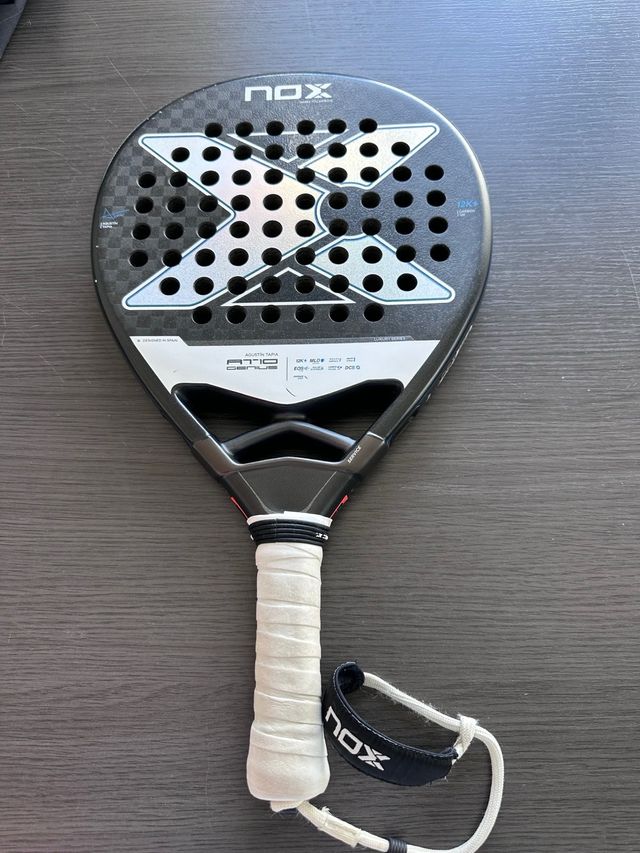 Detalles del productoPala de pádel NOX AT10 Genius 12K, diseñada en colaboración con Agustín Tapia. Un modelo de alto rendimiento. No tiene ningún golpe, vendo por cambio de pala.