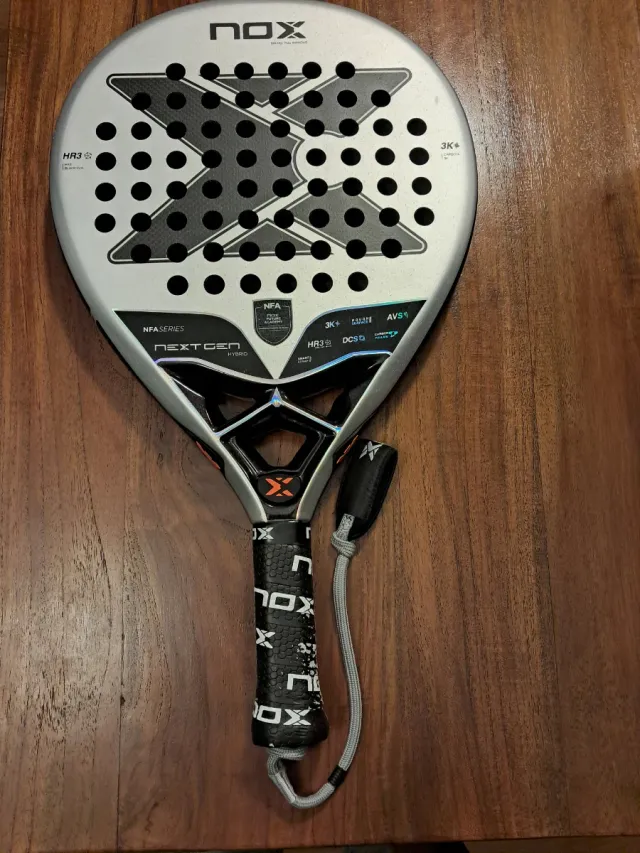 Pala de pádel Nox Nextgen Pro Hybrid con acabado 3K. - Modelo: Nextgen Pro Hybrid - Material: 3K - Serie: NFA - Tecnología: DCSD, AVS