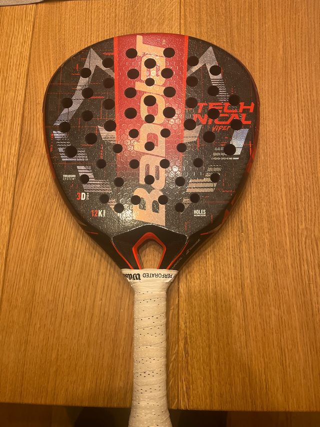 Pala de pádel Babolat Technical Viper. - Diseño en negro, rojo y gris. - Agarre blanco perforado. Precio negociable