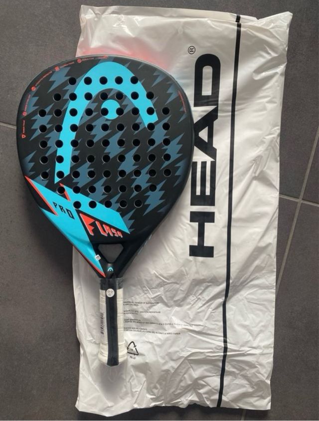 Pala de pádel Head Pro Flash con un diseño moderno en negro y detalles en azul. - Pala de pádel Head. - Modelo Pro Flash. - Colores: negro y azul.