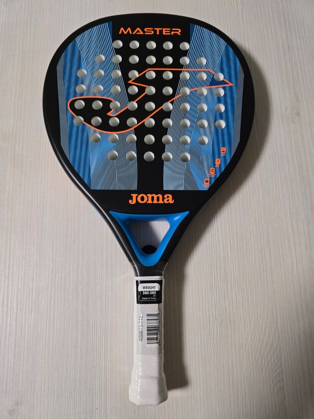 Vendo pala de pádel Joma Master, nueva a estrenar. - Modelo: Joma Master. - Peso: 360-380 gr. - Diseño elegante en negro y azul.