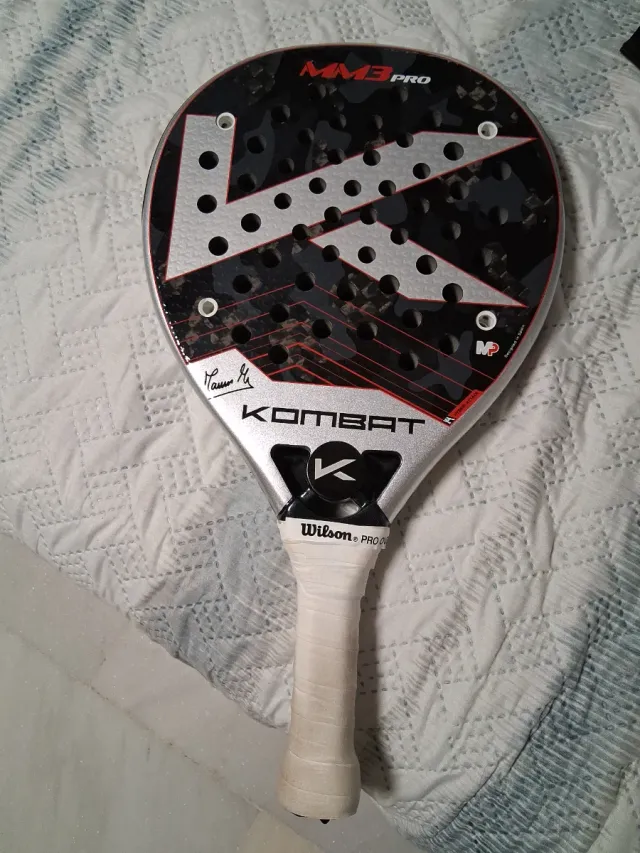 Pala de pádel Kombat MM3 Pro con diseño llamativo. - Superficie con acabado mate. - Marco resistente. - Grip Wilson Pro.