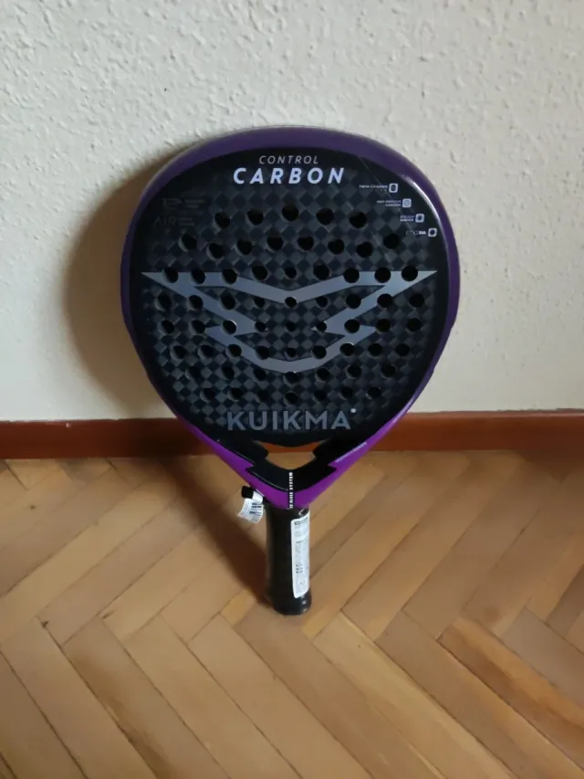 Detalles del productoPala de pádel Kuikma Control Carbon en color morado. Diseñada para un buen control en el juego. Nueva a estrenar, en tienda cuesta 129€.