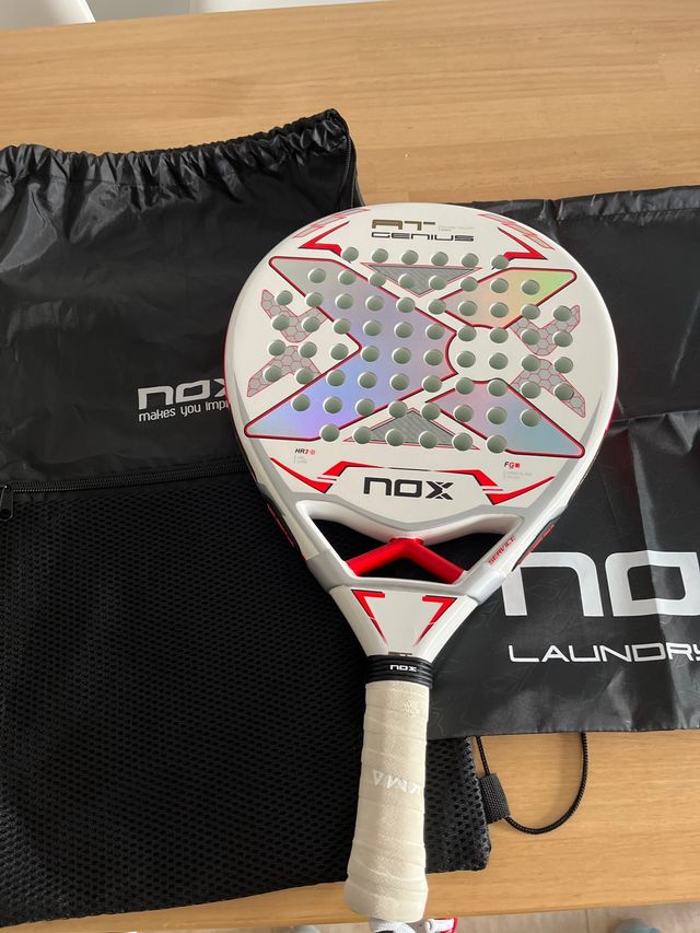 Pala de pádel Nox AT Genius, utilizada solo en dos ocasiones. Se encuentra en excelente estado. - Modelo AT Genius. - Incluye funda protectora.
