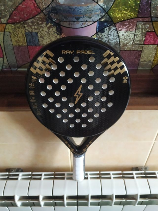 Detalles del productopala de pádel Ray Padel precintadas de carbono 100% características en foto dos modelos en blanco y en negro con caras semi rugosas