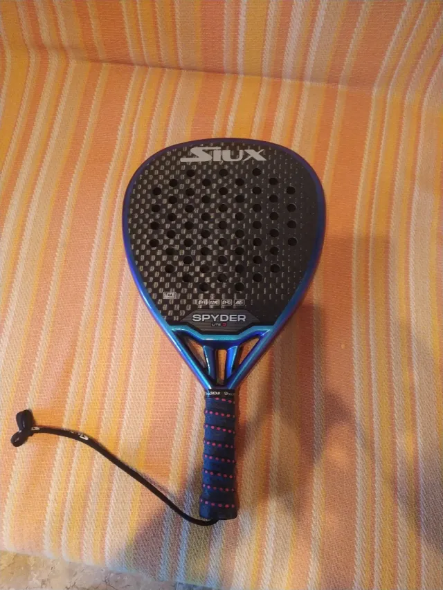 Detalles del productoPala de pádel Siux Spyder Lite 3 con acabado en carbono. Tiene un golpe en una de sus caras