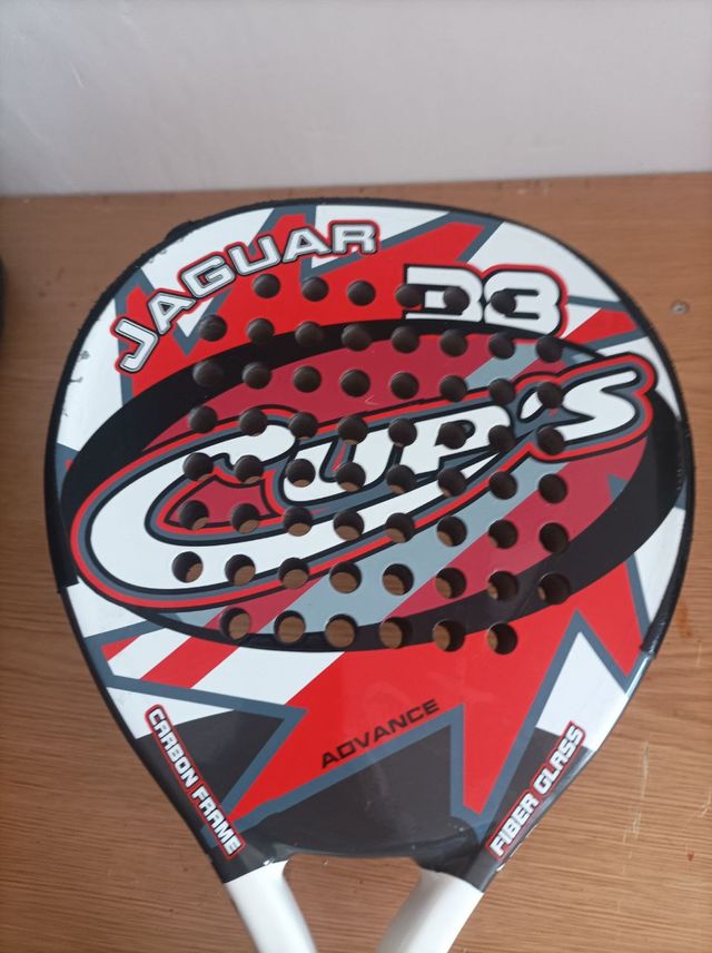 Detalles del productoPala Pádel Ups Jaguar. No es de mucha calidad pero para aprendizaje puede venir bien. Se entrega funda que está rota pero para mejorar el embalaje Medidas del producto
