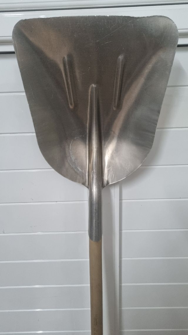 Pala robusta de aluminio, ideal para retirar nieve. - Pala de metal. - Mango de madera. - Ancho de pala: 33 cm. -Alto con mango: 150 cm.