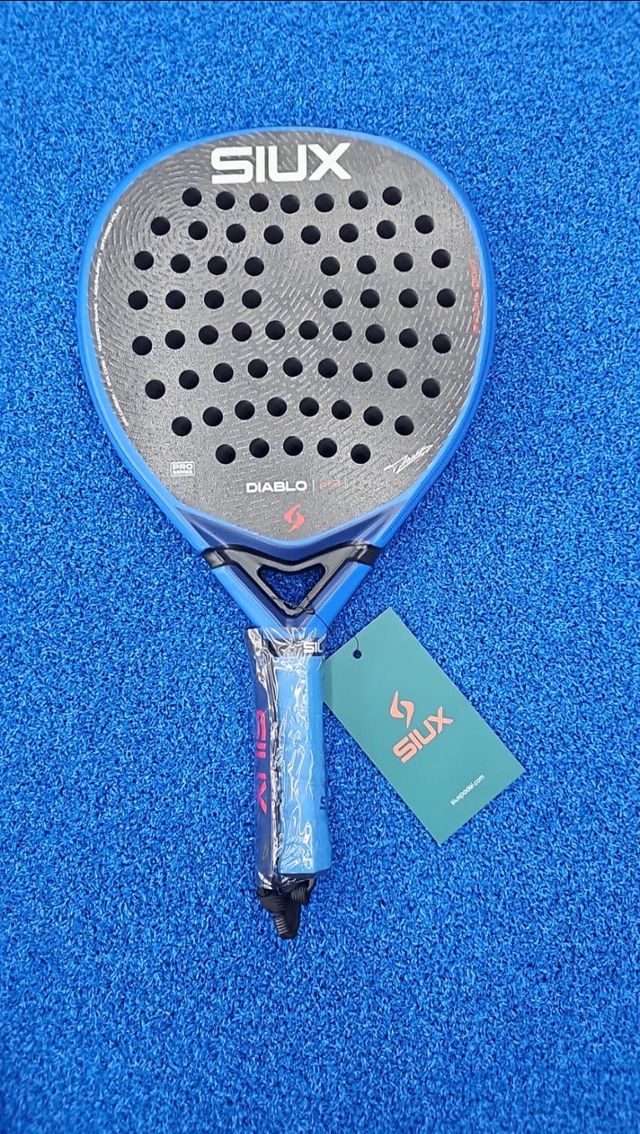Pala de pádel Siux Diablo modelo 2026. - Pala con acabado en color azul y negro. - Diseño con el logo de Siux.