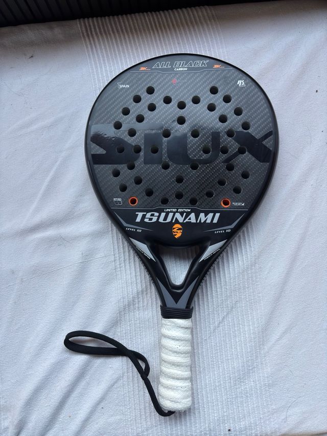 Pala de pádel Siux Tsunami en acabado All Black. - Modelo Tsunami. - Material: Carbon 3K. - Diseño All Black.