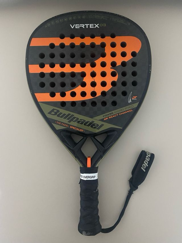 Pala marca Bullpadel modelo Vertex 03 para reparar. Tiene una raja en una de las caras, y me han dicho que es reparable, pero ya tengo una nueva.